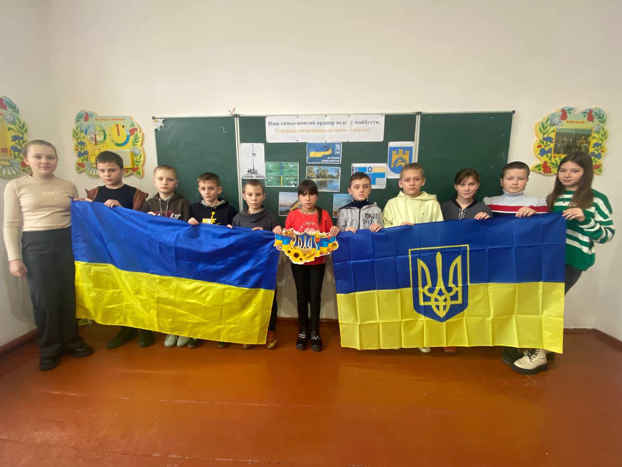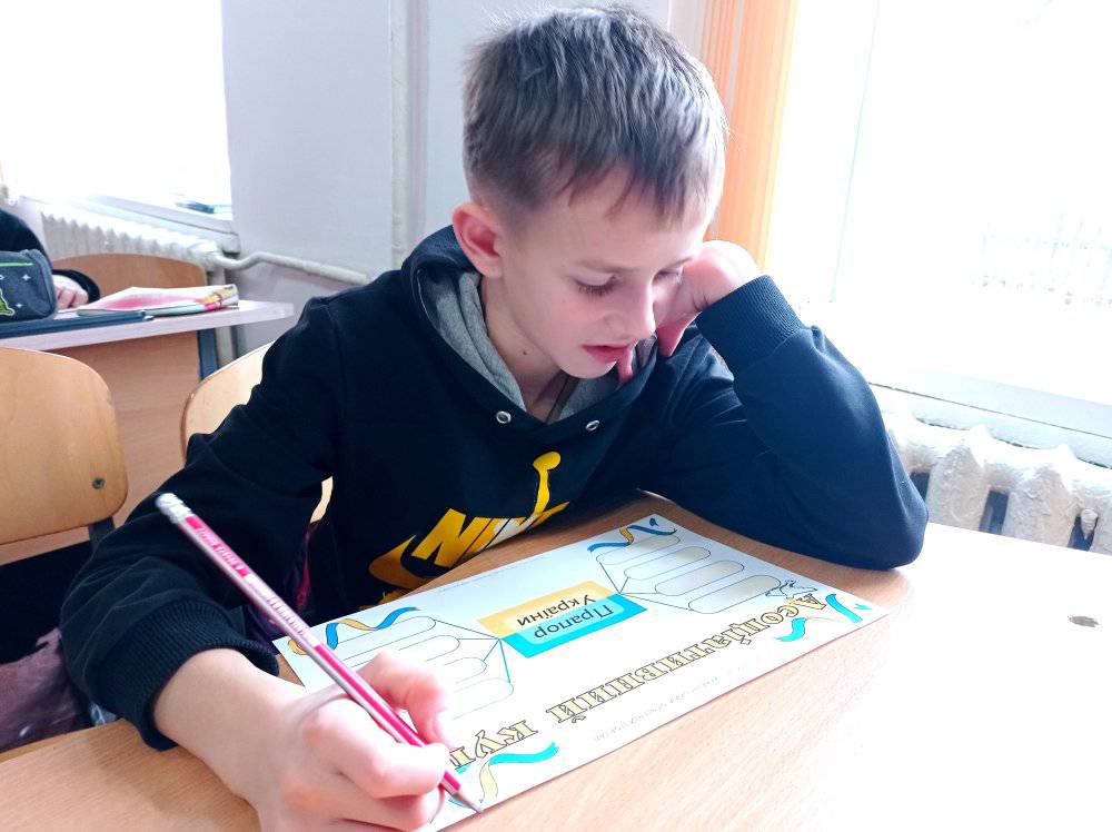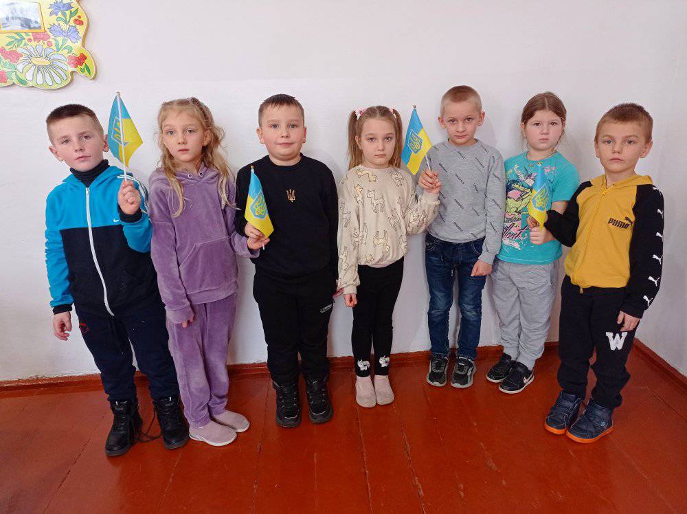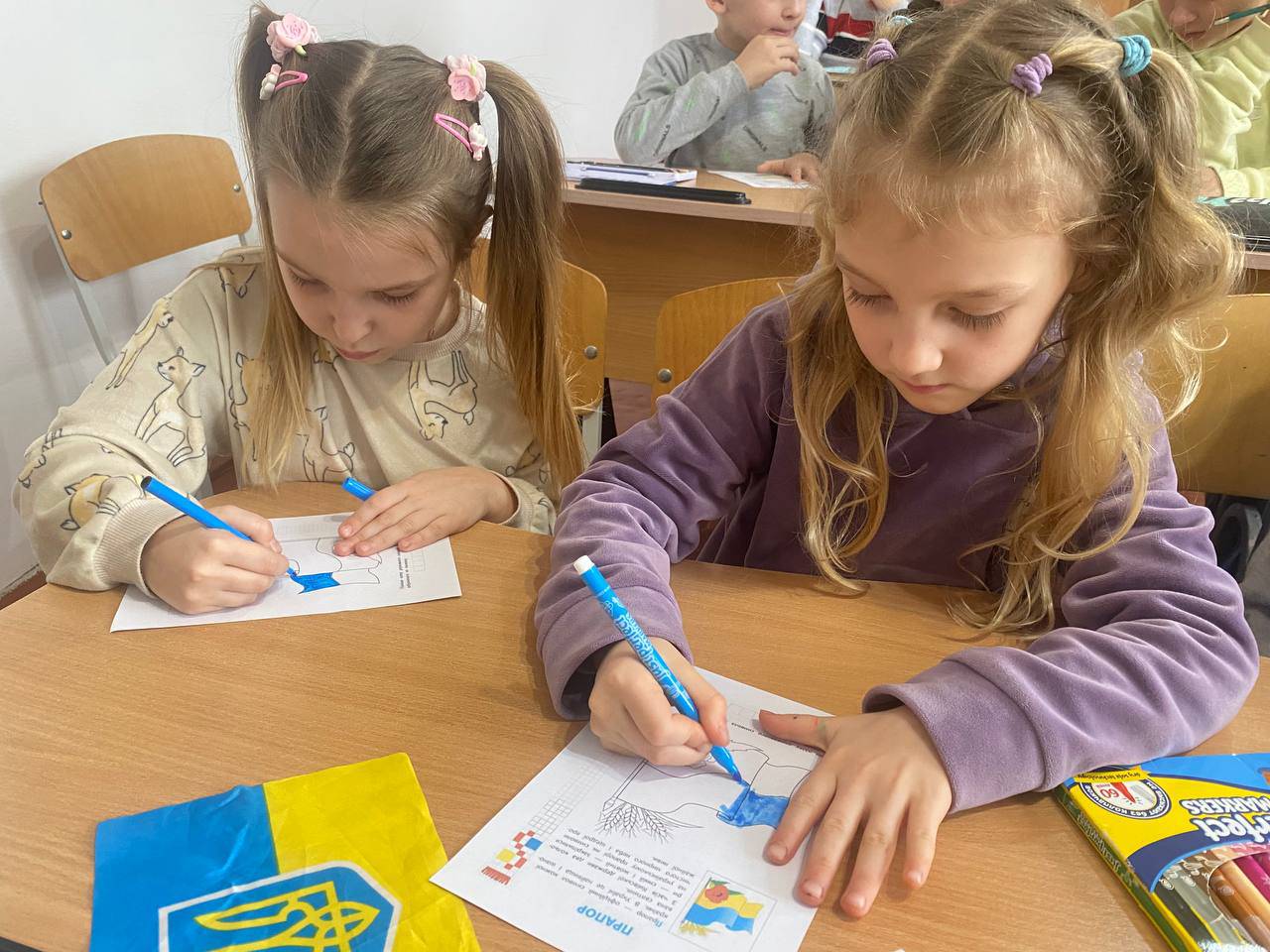 Учні молодших класів освітнього закладу охоче фотографувалися із Державним Прапором, а також розфарбовували розмальовки.