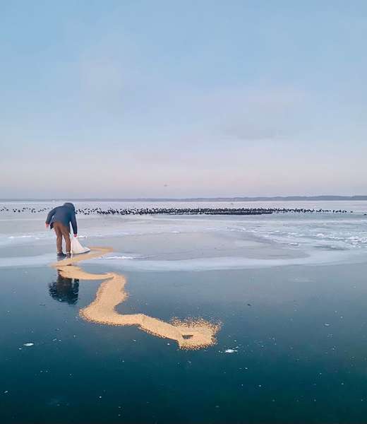 Вода навколо них перетворилась на кригу, а знесилені птахи плавали на маленькому водяному плесі. Відтак там вирішили підготувати пернатих, щоби вони мали змогу полетіти і врятуватись від холоду і голоду.