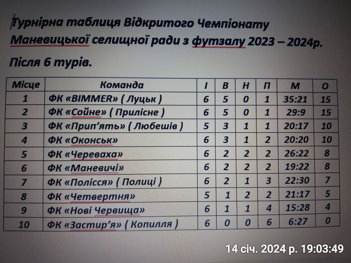 У ФБ-групі «ФК Оконськ» повідомили результати матчів 3-го ігрового дня, який відбувся 14 січня, 5-6 турів Відкритого чемпіонату Маневицької селищної ради з футзалу 2023-2024 років.