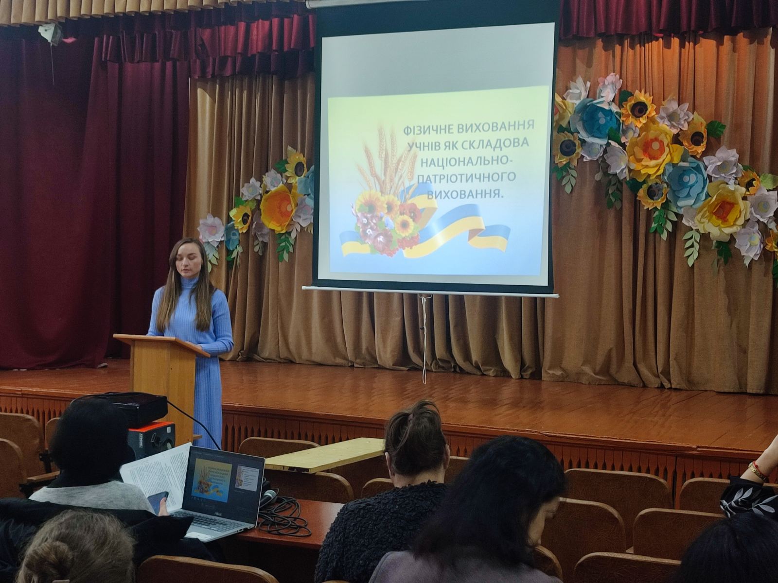 Вчителька опорного закладу «Колківський ліцей» Шрамко В. В. доповіла про фізичне виховання учнів як складову національно-патріотичного виховання.