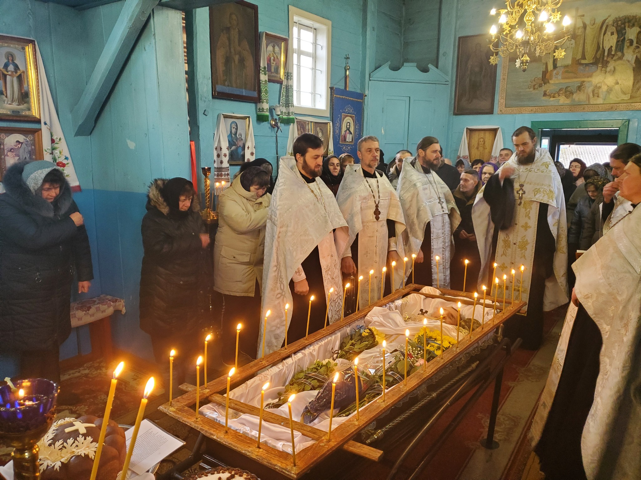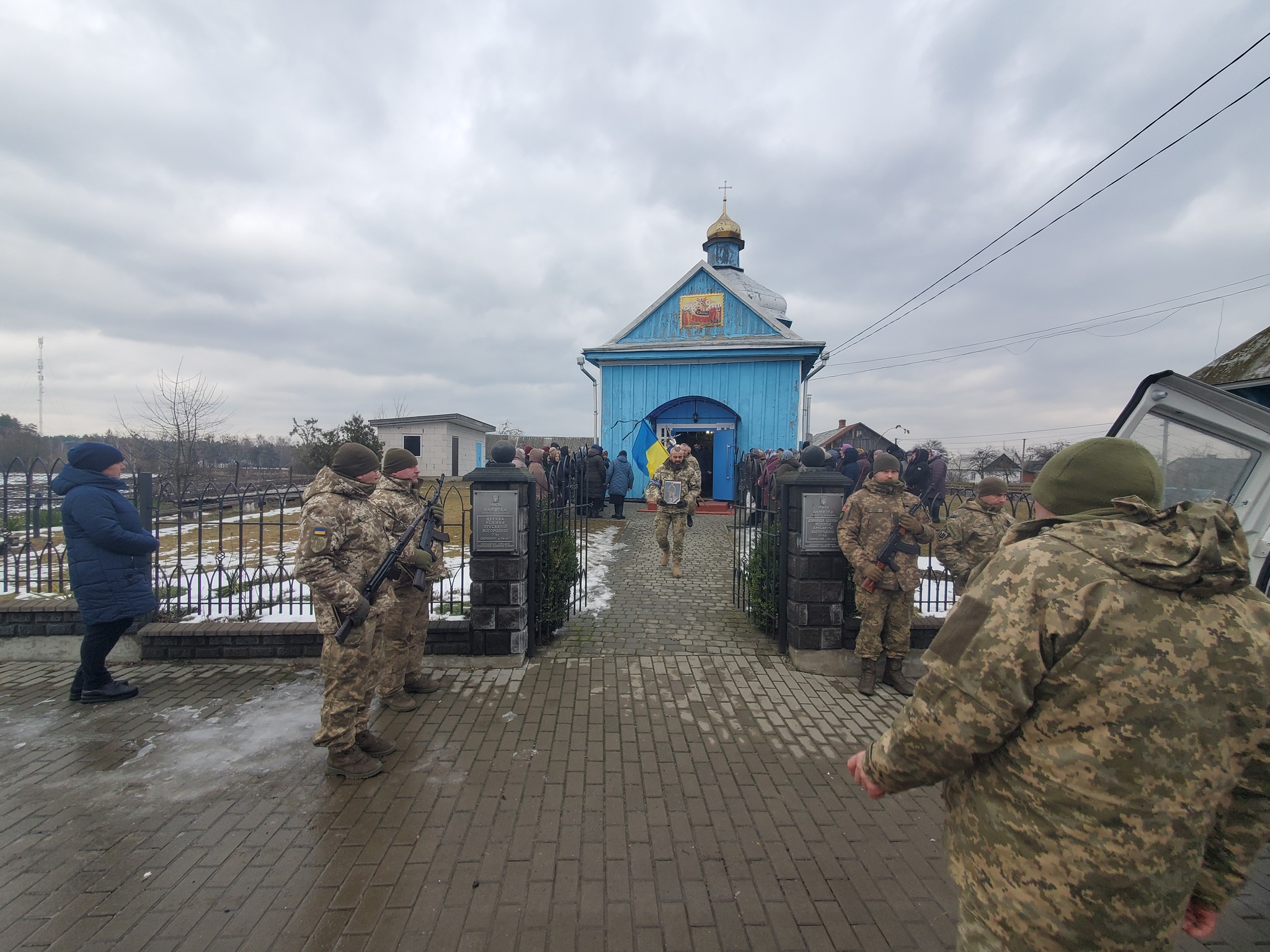 Чин відспівування Героя відбувся у місцевому Свято-Успенському храмі. На місцевому кладовищі троєкратними залпами під звуки Державного Гімну України віддали останні військові почесті українському бійцю.