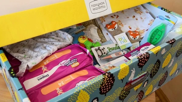 Цей вид державної підтримки з’явився в Україні ще з 2018 року. Він є натуральною допомогою, що складається з необхідних для малюка предметів. Це одяг та засоби особистої гігієни. З 2018 року було видано понад 700 тисяч таких наборів. При цьому батьки можуть вибрати й інший варіант підтримки, а саме грошову компенсацію.