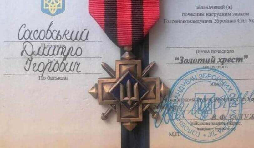 23-річний солдат Дмитро Сасовський проявив особисту мужність і героїзм, стійкість та рішучість при виконанні військового обов’язку та був удостоєний відзнаки Головнокомандувача ЗСУ за відмінне виконання бойових завдань на передових «гарячих» позиціях Куп’янського напрямку.