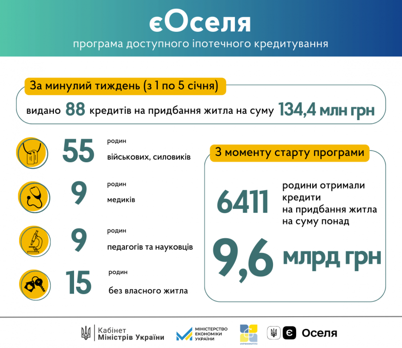 єОселя: результати програми іпотечного кредитування станом на 8 січня
